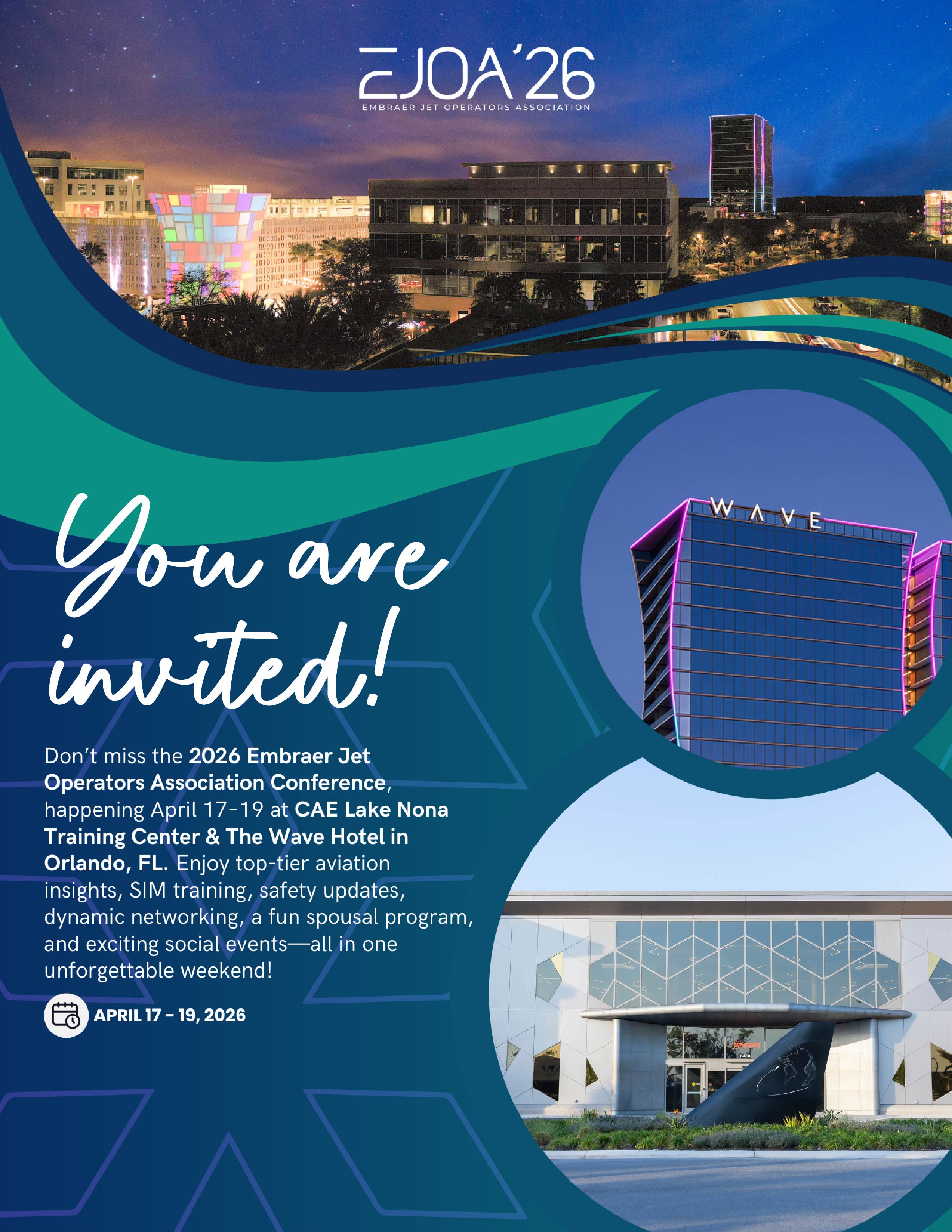Join us for the highly anticipated EJOA 2026 Annual Conference, taking place in vibrant Orlando, FL. This year’s event promises an exceptional experience, combining vital aviation insights, world-class SIM training, dynamic networking opportunities, unforgettable social events and a robust spousal program.